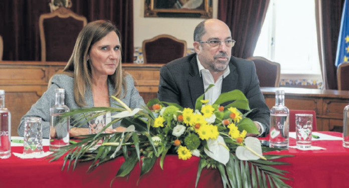 Maria do Carmo Guia com Rui Garcia durante a conferência promovida pelo IEFP na Moita